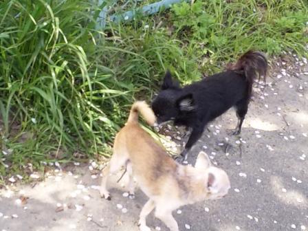 暑い暑い雨が続いたかと思うと、天気のいい日が続く・・・。愛知特有のこの蒸暑さ・・・堪りません・・・。マロンが我が家に来てから7ヶ月になりますが我が家の一員になって2週間目に遊んでいて突然口から水のような物をピュ~っと飛ばすように吐きマロン本人も驚きとパニックでドタバタ走り回り私も家族もビックリ・・・。でも、吐いた後はパニックが無かったかの様にご飯の要求・・・。何かおかしいと思いつつも大体2週間に1度のペースで吐くの繰り返しかと言って下痢をする訳でもなくウンPはいつも通り。何軒か病院を変わっては先生に訪ねるもハッキリとした原因も分からず不安な毎日でした・・・。有る病院では絶食を強いられ不安が大きくなる一方でした2度酷く吐いて同時に鼻に異物が入りもうダメかと思う事もあり私はそれがトラウマになり精神的に参ってしまう状態に・・・6月15日に初めての生理になって症状が最悪の状態に・・・。午前中だけで、3回吐き近所で「いい先生だから行ってみな」と教えて貰った病院を思い出しすぐその病院へ・・・。2~3軒目の病院の検査結果を見てもらいながら診察へ(普通よりも血小板が少ない)ひょっとしたら(マロンは血液再生不良の病気では・・・)と心配してました結果、まず血液の病気ではない事、そして体の内部の病気でも無さそうだという事そして、前の病院で貰っていた特別食(缶詰)は止めてくださいという事要するにマロンは元々消化酵素が出にくい体質であると言う事と生理でホルモンのバランスが崩れたことが重なったのだろうと言う事でした。まずは、血液の病気で無い事が1番嬉しい結果でした。そして、特別食のドライを試供品で貰って来て早速その晩から与えました。吐くことも無く調子が良いのでそのまま特別食のドライフードを購入。あれから1週間吐くことも無くいつもの「ハイパーマロン」復活です・・・こんな事ならもっと早く今の病院に変わっていればマロンも苦しまずに過ごせただろうにと反省しきりの今日この頃です。(ゴメンねマロン)このまま、特別食とは縁が切れないでしょうけど元気を取り戻したマロンを見ていられるなら仕方がない事だと思っています。勿論他にさつまいもや鶏肉を合間に上げていますよでも、1番ホッとしているのは言うまでも無く「おとん」ですが・・・これからも、マロン共々「えいりこファミリー」を宜しくお願いしますネ元気になったマロンとコロン&ラッキーも連れて庄内川緑地へ今回はラッキーがコロンの前にいるし・・・可愛いっすなぁ~相変わらずベッタリな2チワ 今日は長~い話にお付き合い頂きありがとうございました九州地方は梅雨があけたそうですが東海地方はまだまだのようです皆さん食中毒には気を付けて下さいネ夏バテされませんようにそれではみなさんごきげんよう