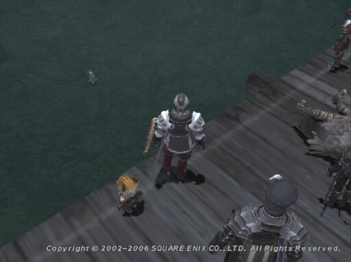 夏休みの帰省のため?かいつもより人が少なかったですが28人でデュナミス-ウィンダスに突入。 開幕から、いきなりござる(侍)AF2がDROP。今日はござる希望の人がいたので良かったです。それから競売近くまで進んだ頃に、暗黒AF2がDROP。暗黒希望者はLeppadを含めて2人。まあ負けてもいいやと軽い気持ちで、ロットすると・・・・・・勝っちゃいました。アビスガントレット:防20 MP+20 DEX+5 INT+8 暗黒魔法スキル+5Lv72~ 暗 それから順調に進み、ボス戦では囮役以外の事故はなくめずらしくスムーズにクリアーしました。(ボス戦までに1,2回全滅することが多いので)残り時間はAF2狩り。ボス撃破後すぐに、なぜだか大量の敵がきてしまい、今回初のほぼ全滅となってしまいました・・・体制を立て直してから、もとの調子になって、モグ方面に進みました。ところが、モグ北の橋のところで事件発生!↑分かりますか? ↑左の池の中に・・・なんとタルタル戦士が落っこちてしまいましたwGMを呼ぶとか、POLサポートディスクに連絡しようとか時計を捨てて再入場させるなどの相談がありましたが、モグ前に敵が再POPしてるし、残り時間もわずかということもあってそのまま放置?されていました。(ログでは岸に上がれたようなことが言われてましたが、未確認です) モグ前までの掃除が終わったところで残り12分。ここで終わっておけばいいのに、競売上の敵にちょっかいを出していつものように全滅してしまいましたw 肝心のDROPは、100×1戦×1暗×1戦×3白×1シ×1狩×1獣×1と、そこそこ出たんですが、人気の召忍などが出なかったのでちと残念でした。