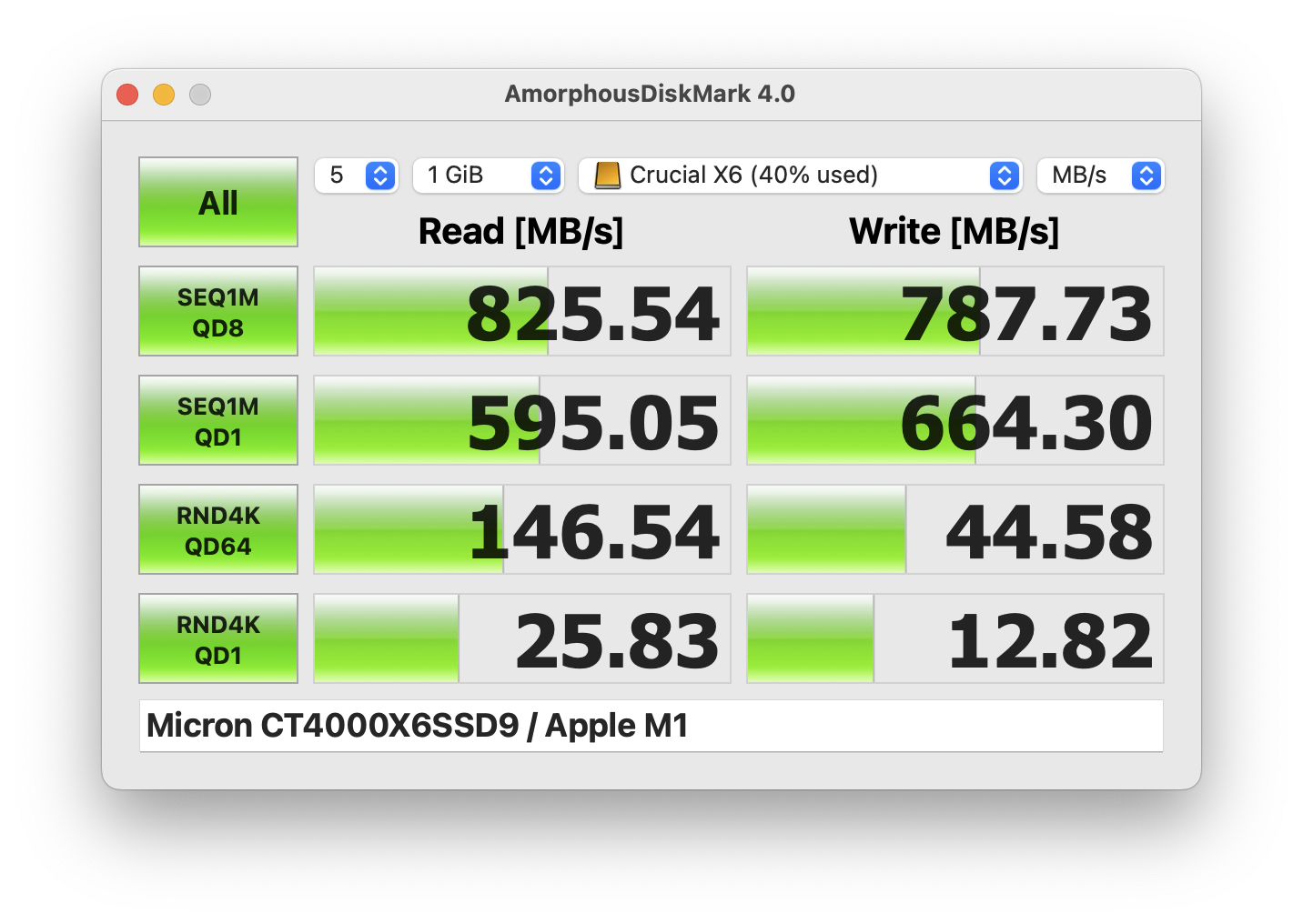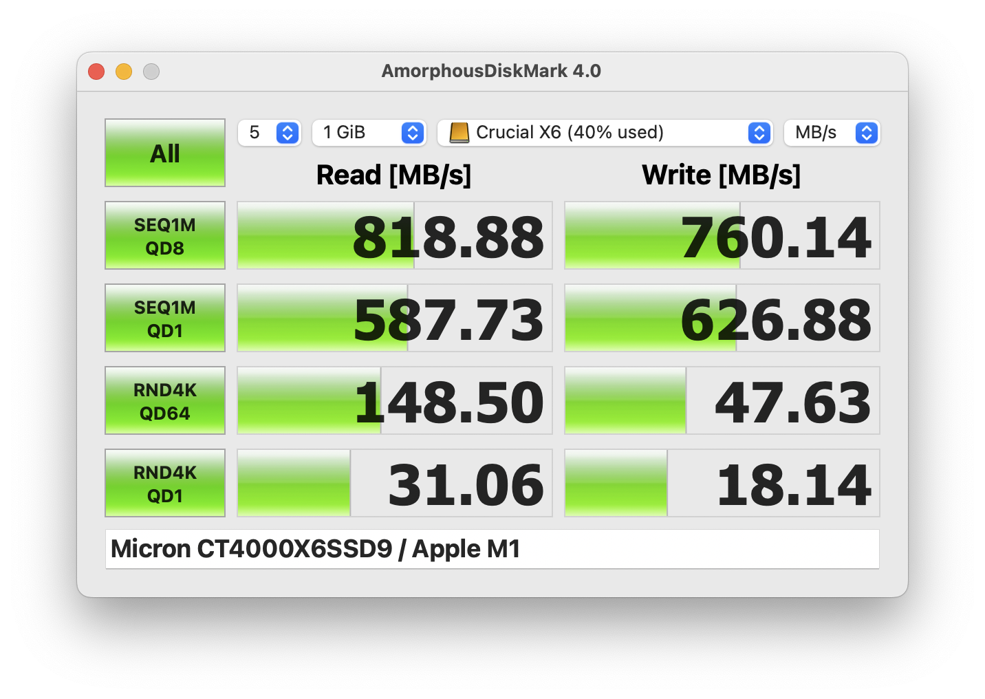 どちらも順次読み取りが仕様の800 MB/s以上出ました。