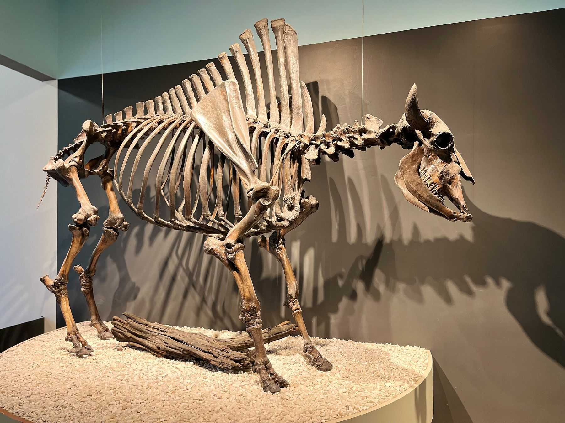 昔、アメリカ国立公園を回っていた際、イエローストーン国立公園に数日間、滞在したことがある。◎イエローストーンの薄明の中で観たバイソンの大群の移動 公園外のモーテルに泊まり、ある朝、まだ暗いうちに起き出し、公園に車で入った時だ。道路を走っていると、どこかで地響きの音がする。なんと、アメリカバイソンの大群が薄明の中に移動していたのだ。その様は、壮観だった。それと共に、大群の移動に巻き込まれたら、車などあっという間に蹴散らされるだろう、ゾッとした。 初日にイエローストーン国立公園に入った時、あちこちに注意喚起看板が出ていて、バイソンに近寄るな、と警告されていた。オスで体長3メートル、体重は700キロほどになる。これが、最高時速80キロで突進してきたら、北米最強の肉食獣のオオカミも無事ではない。まして動きがのろい人なら、弾き飛ばされてイチコロだ。 イエローストーン国立公園では、最もポピュラーな野生動物はワピチ(エルク)だが、バイソンも、よく見られる(写真=道路にも出てくる)。◎イネ科を好む草食獣バイソンには天国 現在、イエローストーン国立公園など北米の草原で見られるバイソンは、もともとも旧世界原産の動物で、例えばヨーロッパにいたバイソンは、旧石器人により氷河期の洞窟壁画にも描かれている(写真=アルタミラ洞窟に描かれたバイソン)。 そのヨーロッパにいたステップバイソンの骨格と復元模型(写真)は、この9月に上野、国立科学博物館の「氷河期展」を観覧した時に観た(10月2日付日記:「上野の国立科学博物館、『氷河期展』を観に行く(1):圧巻のメガファウナのジオラマ」https://plaza.rakuten.co.jp/libpubli2/diary/202510020000/を参照)。 北米には20万年前頃、ベーリンジア陸橋を渡ってきたと考えられている。 渡ってきた北米は、彼らにとってまさに天国だったろう。ロッキー山脈東の、カナダからアメリカ合衆国にかけて広がる、日本の7~8倍もある大平原には、バイソンの好むイネ科の広大な草原が隙間無く広がっていたからだ(バイソンは反芻動物なので、繊維質のあるイネ科も食べられる)。 その天国で、彼らは3種ほどに種分化した。◎体長約4.8メートル、体重2トン以上の史上最大の反芻動物 中でも圧倒されるのは、ジャイアントバイソン(Bison latifrons)である(想像図)。氷河期末の「第四期絶滅」で、マンモス、マストドン、ウマなどと共に大型動物大絶滅で絶滅したが、生きていればさぞかし壮観だったろう。 ジャイアントバイソンの体高は約2.5メートル、体長は約4.8メートルもあり、体重は最大のもので2トン以上、と推定されている。現生のアメリカバイソンよりも25~50%大きかったと考えら、史上最大の反芻類であった(写真=復元骨格)。 ただ、全身骨格は残っておらず、角を伴った頭蓋と脚の骨しか見つかっていないから、前記の推定値は、現生のアメリカバイソンを参考に導いたものだ。 角は、端から端まで213センチメートルにも達している。現生のアメリカバイソンの平均は66センチほどだから、はるかに大きかったのだ。(この項、続く)昨年の今日の日記:「深海に棲む奇妙奇天烈の動物たち:オニアンコウ、ホネクイハナムシ、シロウリガイ」https://plaza.rakuten.co.jp/libpubli2/diary/202411040000/