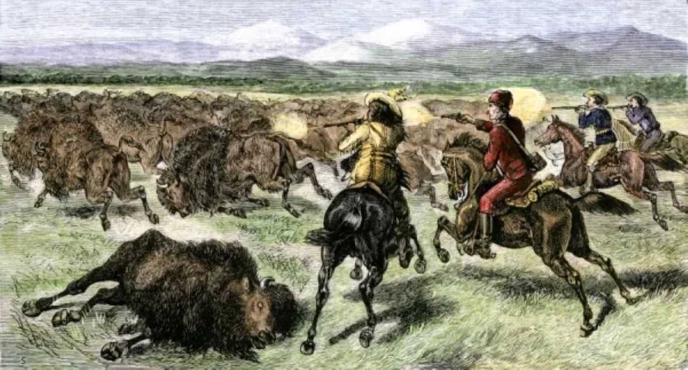 白人植民者は、大平原でウシを放牧するために東部からやって来た。彼らにすれば、バイソンはウシの食べる牧草を横取りする邪魔者である。 さらに放牧地の中に入り込む先住民も邪魔者だったから、バイソンを狩れば彼らの主要食糧を奪うことにもなり、バイソン狩りに拍車がかかった。◎バッファロー・ビルの活躍した時代 スポーツ・ハンティングのように、バイソンを撃ち殺す催しさえ開かれた(絵)。特に19世紀には、鉄道会社がバイソンハンターを乗せて遊興する企画が繁盛した。 それで思い出したのは、イエローストーン国立公園の数日間をかけての見学を終え、他の国立公園に向かう際に、ワイオミング州コーディという街で何気なく立ち寄った施設内に、「バッファロー・ビル博物館」があって、ちらりと覗いたことだ(写真=僕の訪れた時と名称が変わっている)。 バッファロー・ビルとは、西部開拓時代のガンマン、ウィリアム・フレデリック・コーディ(写真)の愛称だが、その名の通り、生涯で数え切れないほどのバイソンを仕留めたことで知られる。ちなみにバッファローとは、バイソンを指すアメリカ人の通称で、ファーストネームがウィリアムだから愛称は「ビル」だ。 当時は、いかにバイソンを狩ったかが競われた時代だった(絵=19世紀に描かれたバッファロー・ビルのバイソン狩りショー)。◎絶滅寸前に保護され、今は50万頭ほどに回復 こうした乱獲で、バイソンは激減し、全盛期には全米で6000万頭もいたバイソンが、ついには500頭程度にまで減り、事実上、人々の前から姿を消した。 これに危機感を抱き、バイソンの保護と育成に乗り出したのが、26代大統領のセオドア・ルーズベルトだった。動物園で保護されていたバイソンを増やして大平原に放ち、また狩猟を厳禁した。 その甲斐あって、今では大平原に50万頭近い野生のバイソンが復活している(写真=グランドティートン国立公園の雪原で雪の下の草を食べるバイソンと春のイエローストーン国立公園で群れるバイソン)。例えば第1回で述べたように、イエローストーン国立公園では苦労なく、彼らの雄姿を観察することができる。◎バイソン牧場も ちなみにアメリカにはバイソンの牧場もある。もちろん飼育し、食肉にするのだが、こちらも20数万頭、飼育されている。 ともあれ現生のバイソンが、大型2種のような悲惨な運命にならなかったことは喜ばしい。たとえ事故で、時に人に被害を与えることがあっても。(完)☆参考・23年2月4日付日記:「数ある海外旅行で訪ねた地、もう1度行ってみたい:グランド・ティートン国立公園」https://plaza.rakuten.co.jp/libpubli2/diary/202302040000/昨年の今日の日記:「いよいよ対ウクライナ軍と対戦した北朝鮮傭兵たちは役立たずかも」https://plaza.rakuten.co.jp/libpubli2/diary/202411080000/