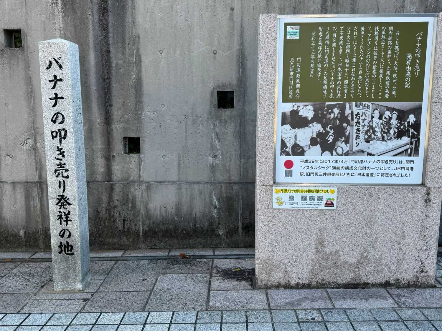 門司港駅の噴水の隣の一角に風変わりな碑があった(写真)。 バナナの叩き売り発祥の地、とある。◎バナナの叩き売り発祥の地 由来の記によると、バナナの叩き売りは大正の頃に始まったらしい。今ではあまり見かけないが、昔、縁日では露店の一角で必ず見られたものだ。門司港は大陸への貿易港として栄えたから、台湾から移入したバナナを、大陸に渡る旅客向けに昔懐かしい口上とともに売ったのだろうか。 門司港駅前を横切る広い道路の前に、日本郵船のビルが建つ(写真)。かつての貿易港の名残だ。ただしごく普通のビルだから、レトロの観光地としてガイドブックには紹介されていない。◎素晴らしい外観の洋館「旧門司三井倶楽部」 紹介されているのは、その隣、その名も旧大阪商船通りと旧三井倶楽部通りの交差点の「旧門司三井倶楽部」の洋館だ(写真)。昔、三井物産門司支店の関係者の社交クラブとして、1921年(大正10年)に建てられたという。 庭はきれいに手入れされ、塵1つ落ちていない。玄関から中に入ると、往事の展示があるかと思ったが、案に相違してレストランだった。 道理で入場無料となっているはずだ。建物の外観を観るだけで終わった。◎風情たっぷりの「旧門司税関庁舎」 次は海岸に出て、そこを北に向かう。歩行者専用の「ブルーウィングもじ」という橋が架かっている。この先の馬関海峡に、前回述べた関門橋が目の前に架かっていた。 ブルーウィングもじを渡って右に見える赤レンガ造り建物が「旧門司税関庁舎」だ(写真)。1912年(明治45年)に建設されたが、その後戦災に遭って、一時は廃屋寸前だったらしい。 1995年に門司港レトロ事業の一環として修復されたという。 ここも入場無料だったので、内部参観は期待していなかった。1階に喫茶店などがあり、2階ホールでは市民の絵画作品展が行われていた。ほとんど屋根が剥き出しで、戦災に遭ったことが偲ばれた。◎帝政ロシア風外観の大連友好記念館 その名も「レトロ中央通り」の向かいに、これまて赤レンガ造りの「北九州市大連友好記念館」だ(写真)。戦前、門司港と植民地だった大連港とを結んでいた縁で、大連と北九州市とは友好都市になり、それを記念して1994年に建てられたという。その意味では、新しい建物だが、モデルになったのは大連市の「東清鉄道汽船会社事務所」という建物で、ロシア統治下でドイツの建築家により建設された帝政ロシア風外観の建物だ。 こちらも入場無料。期待もせず中に入った。1階に「大連あかしあ」という中華レストランがあるだけで、2階もさして目を引くものはなかった。◎旧大阪商船 そこを出て、海岸沿いの「ガス灯通り」を元の門司港駅に向かう。途中で、少し早いが昼食を摂りに和風レストランに入った。快晴で、10月なのに真夏日の高温で、休憩を兼ねて入り、大した美味くもない海鮮丼を食べた。 窓越しに右に最前観た旧門司税関庁舎、左に旧大阪商船の堂々とした建物が見えた(写真)。1917年(大正6年)に建てられた現・商船三井の大阪商船支店が入っていた。 実はこの建物は、旧三井倶楽部を観た直後に間近で観たが、遠望した方が全体に見えて風情がある。 たった1時間ほどだったが、門司港レトロ街は堪能できた。僕は門司港駅に戻り、電車に乗り、小倉駅で新幹線に乗り換え、東京に戻った。それにしても、新幹線のぞみをもってしても、約4時間40分はかかる。下関と門司は、やはり遠かった。(完)昨年の今日の日記:「アメリカの牛肉消費減と鶏肉増という食肉事情とウシの出すメタンガス排出量の多さ」https://plaza.rakuten.co.jp/libpubli2/diary/202410250000/