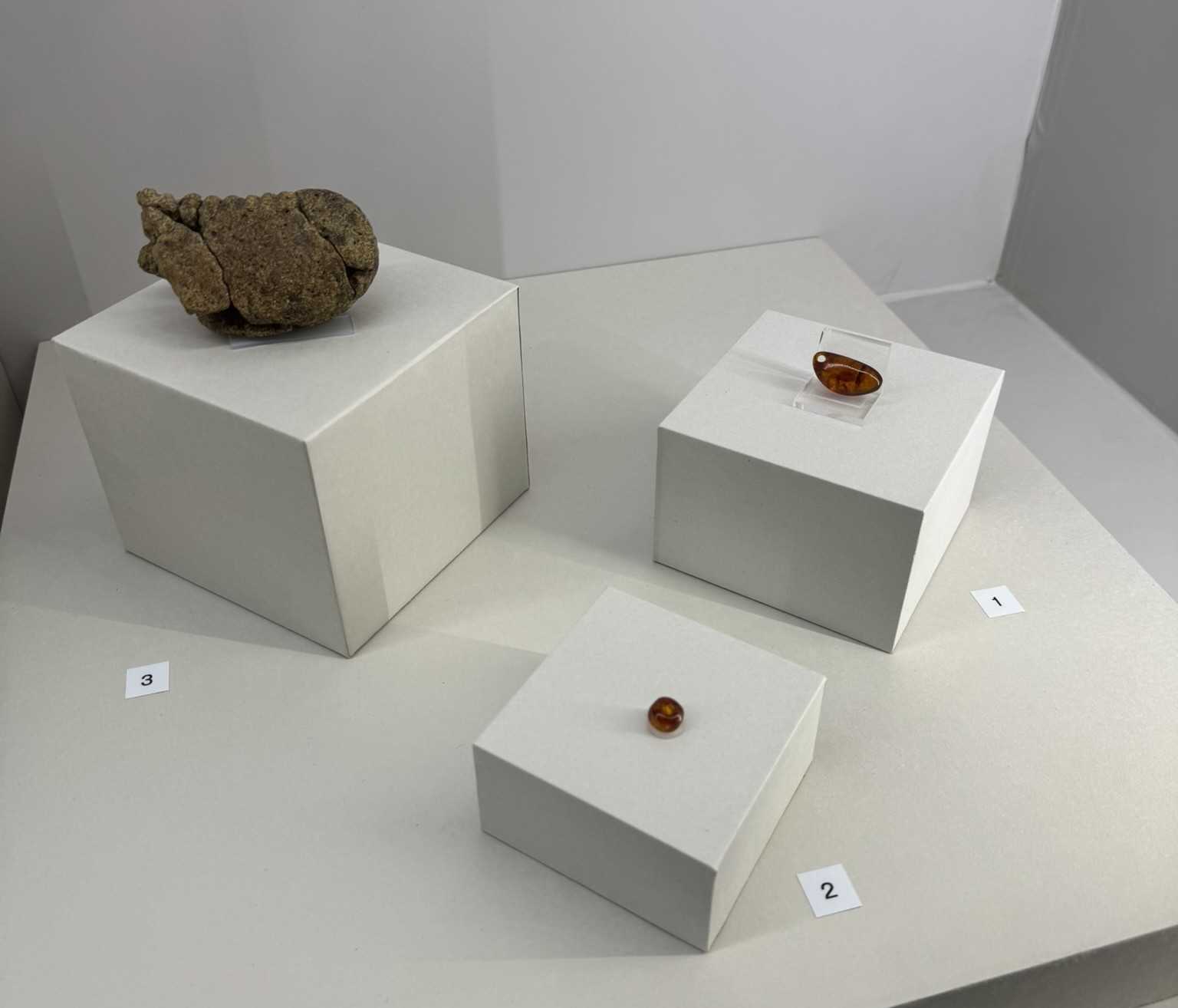 前回で1万カ所以上知られている日本の旧石器遺跡は99.9%は石器だけ出土するものばかりと書いた。◎旧石器人の墓?から出土した琥珀製ビーズ しかし北海道知内町の湯の里4遺跡は、おそらく旧石器人の墓と推定される土壙から装身具類などが出土する希有な遺跡だ。おそらく遺跡外からもたらされた琥珀を加工したビーズが出土している(写真)。細石刃を伴うので、年代は1万5000年以上前か。人骨は、酸性土壌のために残らなかった。 琥珀は道内では道央の三笠市で見つかるが、あと細い水道で隔てられた古本州島の現岩手県久慈市でも産出されている。湯の里4遺跡の琥珀産地は分からないが、案外、久慈産ではないかと思う。◎下北の石灰岩洞窟で石器とノウサギの歯 あまり知られていないが、古本州島の最東北端、下北半島東通村の尻労安部(しっかりあべ)洞窟(下の写真の上)でおびただしいノウサギの歯と石器が見つかっている(下の写真の中央と下=ノウサギの歯とナイフ形石器)。年代は、2万年前頃か。おそらく旧石器人が狩った動物と石器の共伴する唯一の遺跡である。 慶應義塾大学の民族考古学教室が、旧石器人骨の発見を目指して長年発掘調査してきた石灰岩洞窟だが、旧石器人骨はついに見つからなかった。その代わり、獲物にしていたノウサギの歯はたくさん見つかった。ここで、石器でノウサギの皮を剥ぎ、肉は食用にしたのだろう。 ここで旧石器人骨が見つからなかったのは、日本の旧石器人は、死者を洞窟に埋葬しなかった可能性を高める。石灰岩洞窟に埋葬したのなら、人骨が残るからだ。 古本州島で旧石器人骨がただ1カ所を除いて見つからないのは、遺体は開地に埋めたからかもしれない。旧石器時代の開地なら、海面が上昇した今なら海の底だ。◎古本州島と北海道半島で見つかった旧石器人骨は浜北1カ所のみ その古日本島の唯一の旧石器人骨が出土したのは、石灰岩地帯の静岡県旧浜北市(現浜松市)の根堅(ねがた)洞窟である。ここは、石灰岩採掘場で、石灰岩層に混じって様々な獣骨が発見されていた。人骨は1962年に発見された。 出土層位は上層と下層があり、展示の実物人骨は上層のものである(写真)。年代は1万4000年前くらいか(右脛骨のみ出土した下層は1万8000年前)。推測だが、保存されやすい石灰岩層でも写真のように破片でしか見つからないのは、女性と推定されるこの旧石器人が肉食獣に捕食された残骸ではないだろうか。 古本州島では、旧石器人骨はここだけでしか見つかっていない。しかし前回でも述べたように古本州島と北海道半島での旧石器遺跡は1万カ所以上も見つかっているのだ。ヒトがいなければ石器は作れない。古本州島と北海道半島の旧石器人は、幻の中にある。昨年の今日の日記:「デンマークでヴァイキング時代の保存状態の極めて良い人骨50体を発掘」https://plaza.rakuten.co.jp/libpubli2/diary/202410180000/