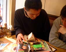 さあ!今日も、前向きにいってみましょう! またまた昨日の続き‥の前に、今回の夢物語のようなプロジェクトの強力な助っ人、ミヤショーさんが夜だけマスターをやってる「田園」で、昨夜、年間555本のライブを達成した伝説の弾き語りスト、C-KUNのLIVEがあった。。前向き野郎は、例によって、LIVE終了後に到着したのだが、↑(またかよ‥)C-KUN、LIVE終わってンのにも関わらず、ボクのタメに一曲だけ、ノリノリのナンバーを演ってくれたのであった。いやはや、スゲかった。。こういうヒトがおったりするから世の中は広いなぁ~と思うのよ。名前ンとこクリックすっと彼のサイトにジャンプできます。で、彼の2006年02月21日の日記を見てチョ。ボクが写っておるから‥。ケータイで見てるヒトは、↓こちらにアクセスしてネ。http://www.c-kun.com/imode/index.htmボーダフォンのヒトは↓こちらから‥http://www.c-kun.com/vodafone/index.htmゼヒ、機会があったら、彼の歌をいっぺん聴いてみてください。彼みたいに、アコギ1本でロック演れてるヒトって、そうはいないと思います。↑ハイ。LIVEもとっくに終わったあとでお客さんたと気軽に記念撮影。。まん中でピースしてるヒトがC-KUNで、右端がミヤショーさん。ソレと、ボクの前向き日記にちょくちょくコメントをくださってるkinuxさんから紹介してもらったンだけども、宮崎に Life Timeというお店があるそうです。お友だちがやってるLIVEハウスなンだそうですけど、この店のサイトのプロフ見てたら涙が出た‥。スバラシ~っ!やっぱLIVEハウスはこうでなきゃイカン!いやぁ~、LIVEって、、ホントにイイもんですねぇ~♪では、こっからが昨日の続き‥ね。。ひたすらママさんからの返信を待つうちに、眠りこけてしまい、朝がきた。モチベーション下がるよな~ ‥‥と目覚めイッパツ後ろ向きに呟きながら、ふとケータイを見ると、メールが来てる。。ソコはドコ?明日から行動するのかな♪とだけあったが、そんでも、返事がないよりマシ。よっしゃ!すぐにミヤショーさんに連絡だ!久しぶりに、前向き野郎の血がたぎる。燃えてきたのだ。朝からドンブリめしを二杯食って、闘志をみなぎらせる前向き野郎なのであった。↑(食いすぎだけどもね‥)とは言っても、ミヤショーさんは夜型生活のヒトであって、朝からメールしても、返事が来るのは夕方すぎ。メールするぐらいなら、こっちから出かけて行ったが早い。で、金もないのに、ノコノコと「田園」へおもむき、明日、連れてきますンでヨロピクお願い致します~と再度のお願い。こういった業界スジの方に礼を失すると、命取りになりかねない・・(汗)。。トクに命懸けでLIVEハウスを張ってるようなヒトに対しては、誠心誠意、お願いするのがその道の「わきまえ」というモノなのである。箱さえあればLIVEハウスはできるなんて、ナマっちょろいモンじゃないのよ。実際、LIVEハウスの経営ってのはシロウトが思ってる以上に難しく、そして、厳しいらしい。しかし、われわれは、敢えてナマっちょろい考えイッパツで実現させようとしておるワケで‥(笑)。。こうしたコトもふまえて、あの「ソナタ」のママさんに対し、ご指導願わなくてはならんので、お互いを引き合わせるまで、気が気ではなかった。そして、日曜がやってきた。待ち合わせした場所へ行って、妙に若づくりしたママさんを連れて、「田園」へ到着。ドアを開けると、薄暗い店内から、ベタベタなどブルースの演奏が響いてきた。おぉ‥、イイねぇ~とダレに言うともなくつぶやくママさん。先に立って中へ入り、キーボードを演奏している頼みの綱に、あの‥、、連れてきましたけど‥と囁いた瞬間、普段は穏やかでつぶらな彼の瞳が、キラリ!と光ったのであった‥。どう考えてもまだまだ終わらないので、またも明日に続く。ってなワケで、今日はここまで。。ま、サクっ!といきましょっ さあ!今日も、前向きにまいりましょう! 《終》