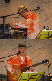 さあ!今日も、前向きにいってみましょう! 昨夜、あの「ソナタ」で、樋原 海 (ひのはら かい)さんのLIVEが、ありました。樋原さんのプロフは、→ コチラ ←をご覧ください。で、ナゼかボクまで夕方、お店に集合!ってコトになりまして、ために ためた仕事をほったらかして、スタコラサッサと現場入り。。↑(クライアントさんコレ読んでなきゃイイけどな‥)ありがたいコトに、「田園」のミヤショーさんもヘルプで駆け付けてくれて、樋原さん到着と同時に、セッティングスタート。 ↑こんな感じ。。この間ボクは、ナンもせんで、テレ~っと見ているだけであった。コレは余談ではあるが、この日のLIVEのタメに、ミヤショーさんと、ぢゃお!のテツさん、つまり、「てっしょう」のお二人が、数日前にやって来て、ワザワザ、ピンスポットを設置してくれていたのだ。↑(めっちゃイイ人たちだよなっ!)で、無事セッティングも完了。あとは本番を待つだけとなった。 ↑コレ、樋原さんの楽器。。で、この日、ダレがナニを思ったか、仰々しいお花が届いておって、せまい入口を塞いでおったもんだから、エッチラオッチラ、一階まで降ろし、スズちゃんとセッティングを終えたミヤショーさんとで記念写真をパチリ! ↑ハイ、、。。この撮影の後、ミヤショーさんは、「田園」があるのでバイクですっ飛んで行った。今回の樋原さんの長崎LIVEは2DAYS LIVE となっており、明日は「田園」でのLIVE。。樋原さんも開演の時間までホテルで待機するとかで、戻って行った。で、お店に残ったスズちゃんとボク、、開演まで2時間もある‥。。待ってる時間というのは実際よりも長く感じるモノで、こういう時、ニンゲンは、いらぬコトを考え始める。。スズちゃんがポツリと言った、、。お客さん、来るやろか ‥・・・。。で、ボクが、チケット、何枚か売れたんやろ?と聞くと、チケットは売れんかったけど、12~3人ぐらいは、来るて思う‥たぶん‥↑(どひ~っ!)い、今さら、、そんなコト聞かされてもなぁ‥しかも、その中途半端な数字が、イッタイ、、どっから出てくるのか‥。。今夜の開演は8時から。なのに、7時50分の時点で、ボクとスズちゃん以外、スズちゃんのお友だちって女性が1人おるだけ。。もうソロソロ樋原さん来るよね ‥溜息まじりに天井を見上げるスズちゃんなのでありました。こうなりゃ、客引きでもしに行こか‥と、言おうとしたその時、ドアが勢いよく開き、ゾロゾローっと、数名の団体さんが入って来た!ネオン点いとらんから休みかて思ぅたバイ!ス、スズちゃん、こんな日はトクに、ネオンは点けとけよな‥。。そして、長崎時間のお客さんたちの数もようやく「つ離れ」した時、樋原さん登場。。。軽い挨拶のあと、いきなり、♪ミスティ♪からスタート。。↑(シブっ‥!) ↑(うっ‥、、うまい‥)このオッチャン、↑(ボクよか年下だけど‥)メっチャ メチャ カッコいいやんけ!一発目でオーディエンスを魅了してのけて、次から次に、歌いまくり、弾きまくる。。しかし、歌もギターも、泣かしてくれるじゃないよ~。。聴いたコトないヒトは、樋原さんのサイトでチョボっとだけ聴けますンでゼヒ、聴いてみてチョ。↑こんな感じで LIVEも徐々に盛り上がり、手拍子、足拍子、掛け声に、声援が飛び交って、延々2時間越えのステージは、アっちゅうまに、大詰め。↑客層がまた‥「ソナタ」らしいといえば、 らしいのだけどもね。。で、とうとう、、最後の曲。↑(曲名忘れちまった‥) ↑う~ん‥こうやって見ると、やっぱ、カッチョイイな。で、無事、終了。。↑スズちゃんの満足そうな顔。。この日、「ソナタ」に集まったヒトたちは、とってもラッキーであっただろうと思います。樋原さんは、長崎にはメッタに来ないヒトなので、こういう機会を逃すと、ナカナカ聴くコトができない。。ボクもラッキーでした。彼を紹介してくれた「田園」のミヤショーさんに、ホント、感謝感謝です。。で、ステージ終えて、お疲れさんでした~♪の焼酎をオイシそうに楽しむ樋原さんの和みショットを、最後に載せときます。 樋原さん、ありがとう。また来てネ。。ってなワケで、今日はココまで。。ま、サクっ!といきましょっ さあ!今日も、前向きにまいりましょう! 《終》