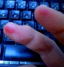 さあ!今日も、前向きにいってみましょう! 今日は朝も早よから仕事場へ出てきて、エンヤトットでお仕事に追われておる前向き野郎。。朝、出かける時、オッカサンが、お弁当を持たせてくれたので、お弁当のオカズはナンですかと尋ねると、尾頭(おかしら)付きの焼き魚 ‥と言うので、ハリキって出て来たのだけど、ランチタイムに、ワクワクしながら弁当の中身を見たらば、焼いたニボシであった‥(泣)。。ま、ゴハンが頂けるだけシヤワセと思わないと、バチがあたるよな。などと、独り言をつぶやきながら、梅干しのタネをクチん中で転がしていたら、危うく飲み込んでしまうトコであった。ナニゴトにも感謝のキモチをもっておかないと、そうやってバチがあたりかけるのであるからして、オッカサン、おごちそうさまでちたと空っぽの弁当箱に手を合わせて、冷や汗交じりに自戒した次第。。しかも、昨夜は帰りが遅かったので、お弁当をこさえてもらえただけ、ココロから有り難く思わんとな。。で、昨夜、ナゼに帰りが遅かったかと言うと、お友だちのお誕生日パーチーを前向きにすっぽかし、性懲りもなくあの「田園」に立ち寄って、ピラ~っと、ベースを弾いておったのでありました。ココんとこ、顔に似合わず、無性に忙しかったンで、ストレスがけっこう溜まっており、ココらで息抜きせんと病気になるかもすんない ‥と思ったからであるけども。しかし、相も変わらず、ヘボベースなので、他の楽器のヒトたちが逆に合わせてくれた。←(恥‥)で、いつになくハリキッてしまい、ワレを忘れてブンブン弾きまくっておったら、ナンと!血マメができてしまった。。↑コレがソレ。(※撮影:本人)前向き野郎は顔立ちと図体に似合わず、指だけはキレイなのだ。その白魚のような、人差し指(おかあさん指)と中指(おにいさん指)に、まっ赤な血マメが。。こうなるまで気づかなかったとは‥。ナゼに、痛くなかったのだろうか‥。ニンゲンは大きな痛みがあると、他の小さな痛みは、抑えられてしまうらしい。例えば、水虫で苦しンでるヒトがいたとする。。で、その水虫のヒトに、急にイボ痔が出てきたとする。。そうしたバヤイ、イボ痔の痛みの方が勝つからして、それまでの水虫のカユみは忘れてしまう。。と言うコトで考えると、人一倍感じやすい前向き野郎が、今もズキズキと痛む血マメに気づかなかった理由は、他に大きな痛みがあったからに他ならない。して、その痛みとはナンだったのだろうか‥とさっきまで真剣に考えていたけど、コレといってココロアタリがない。ただひとつだけ考えられる要因として、ひょっとすると、どうもコレは、酔っパラってたからではあるまいか・・、。・・・。で、しばらくの間、お酒は控えようと思った次第。↑ウソってなワケで、今日はココまで。。ま、サクっ!といきましょっ さあ!今日も、前向きにまいりましょう! 《終》