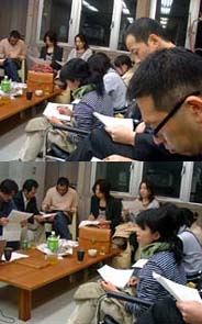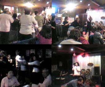 さあ!今日も、前向きにいってみましょう! オッカサンが風邪で寝込んで、かれこれ一週間。。オッカサン、キモチだけはメチャメチャ若いヒトなので、ジッとして、オトナしくしてくれない。。そのクセ、アレコレ用事を言いつけては、自分は病人で動けないと、めイッパイ主張するのであった。早く元気になって、お寺のお掃除に行きたいと言うので、そんなにお寺の掃除が好きですかと聞いたら、ニカ!っと笑って、うんっ!なんでも、、モップ持って本堂を掃除してる時、ダレも見てないのをイイコトに、鼻歌歌って、腰をクネクネさせながら、踊っておるらしい。。ある日、お寺の奥さん(房守さん)に、その鼻歌を聴かれたらしい。ナニ歌ってんの?と聞かれて、マンボ!と答えたトコロ、即座に、ウぅッ!と返ってきたそうで、その時、オッカサン、房守さんのコトを、若い頃けっこうナらしたクチやな‥と思ったそうな。オッカサン世代が若い頃といえば、今みたいな踊りはモチロンなくて、主流は、マンボに、ルンバに、チャチャチャ。。コレよかチトあとになって、ツィストやゴーゴーが流行するワケだけれど、そういうの、ボクはまったく興味ない。で、昨夜、仕事の帰りに、例の「田園」に寄ったらば、今夜、ゴーゴー大会があるから一緒に行こうよぉっ!とあるマダムに誘われた。。この日は、朝から花見もやったので、かなり疲れておったけれども、マダムの誘いを断るナンてのは、紳士としてあってはならないので、常連で後輩のタマちゃんと、シブシブくっついて行った。。くっついて行ったのはイイが、連れてかれたお店に入った瞬間、こりゃ、敬老会と違うか‥?と思ってしまった。だって、ソコに集まってるお客さんが、60過ぎたぐらいのジイチャンバアチャンしかいないのだから。まぁ、「ゴーゴー大会」なんてカンムリが通用するぐらいだから、チットは覚悟しておったけども、ボクのオッカサン世代がウジャウジャおるワケよ。。 ↑こんな具合‥。。ソレ、フィーバーっ!!↑(コレも古いけどな‥)しかも、ゴーゴー大会にも関わらず、どっかのバアサンが、カラオケでド演歌を歌っておるし‥。老人臭のプンプンする中、肩身のせまいオモイをしながらソファに腰掛けておったトコロへ、「田園」のオーナーのKOGAさんが駆け付けて来た。どうも、こういう集まりが好きらしい。で、ボクらの席だけこんな感じ。。 ↑約一名を除いて、 ソコソコ若い、、。。KOGAさんは、入って来るなり、すかさずカラオケを選曲し始めたトコを見ると、意外とジイチャンバアチャンと趣味が合うのかもすんない‥。しかし、この固まりの中で、マダムだけは最初からノリノリで、ステージに立って、ムード歌謡は熱唱するわ、どっかのジイサンとチークダンスは踊るわで、大ハシャギであった。そんで、 ジイチャンバアチャンたちの踊る妙なダンスを、しばらくボケ~っと眺めておったけども、次第に、お酒が回ってきたせいか、ジイチャンバアチャンの毒気にあてられたせいか、もうどうだってイイやぁとなってしまい、前向きに、ステージへあがって行くのであった。こうなってしまったら、もう、ダレにも止められない。。前向き野郎・オンステージの始まりはじまりぃ~~っ! ↑コレね‥。。(写真提供:タマ)一時期は、マジでアイドルを目指したコトもあっただけに、歌って踊って、、なんて屁のカッパ。。見よ。たちまちバアチャンたちのハートを鷲掴みして、とりこにしてしまう前向き野郎。。しまいにゃ、胸キュンとなったお二人様が掟破りの強行に出る始末。たまらずステージに上がってきたバアチャンに抱きつかれ、アチコチ触られまくるのであった。。ふぅ‥疲れた。。ま、ナニはともあれ、ジイチャンバアチャンがソノ気になったら凄まじい‥っつうコトをあらためて確認して、フラフラになりながら帰宅。眠りこけてるオッカサンの寝顔を見やって、早く元気になってまたお寺で踊れたらイイな‥とココロの中で呟いた次第。。この日は、ホント、長い一日でありました。ってなワケで、今日はココまで。。ま、サクっ!といきましょっ さあ!今日も、前向きにまいりましょう! 《終》