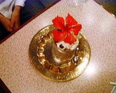 さあ!今日も、前向きにいってみましょう! -さらにつづき-今回のパフェ侍、ナニをかくそう、このハワイで出しているらしい、 6人前の超特大パフェを食べる! という無謀なテーマでもって、おごそかに実行されたのであった。。パフェ侍の前に、敵はない!6人前だろうが8人前だろうが、斬って捨てるまでよ。ふ、ふふふ‥。。↑(毎度おバカなコトを‥)しかし、「6人前」とヒトクチに聞いて、ドレほどの量があるか、想像できるだろうか‥。。お店のショーウィンドウに、見本がデーン!と置いてあったが、パッと見た目には、そんなにスゴク感じなかった。実物を目の当たりにするまでは‥。。で、ついにやって来たのであった。↑コレ。6人前パフェ、その名も「貴族」‥。6300円也。。そして、お店のヒトの笑顔に注目。よほど、嬉しかったのだろう、満面の笑みを浮かべながら運んできた。。↑貴族‥‥。。と、↑見とれる神崎隊長。その大きさを比較してチョ‥。コレ、斉藤さんのオーダーだったっけな‥あたしゃ知りませんよ。。チョイと失礼して、トイレ目がけて突っ走る冷や汗混じりの前向き野郎。ジツは前の晩からお腹の調子がイマイチかんばしくなく、お店に到着するなり、トイレに行ったり来たりの、下痢ピー野郎なのであった。しゃがみながら、あんなモン食ったら、間違いなく死ぬ‥などとさっきまでの威勢のよさはドコ吹く風で、情けなく呟きまくっておったが、そんなコトでは「パフェ侍」の名がすたる!というモノ。覚悟を決め、とっくに6人前と格闘しておる席に戻って行くのであった。すると、↑ナンだこのサングラスは。↑このヒトも‥。↑このヒトまで‥‥。。照れ隠しなのだろうか。トイレから戻るなり、コレをと差し出す、↑怖いオニイサン。斉藤さん、マジでソレっぽいよなぁ。。断りでもしたら痛い目にあいそうであった。で、アニキ、ナゼにグラサンなので??と尋ねると、どうも、今回は、「パフェ侍」のニューバージョンで、 パフェ大門 というコトらしい。とりあえず、大門バージョンを撮影し終え、元に戻って可。。というワケで、↑いつものパフェ侍に‥。この和やかさの、ドコが侍なのか分からないけども、そんなコトはこの際どうでもイイのだ。あっという間に6人前パフェをたいらげて行く侍たち。しかし、、ソコはサスガにニンゲンである以上、限界っつうモンがあるワケで、前向き野郎も、神崎隊長、シンデレラ両名も、太刀(スプーンのコト)を持つ手が止まった。。も、もうムリでござる‥む、無念じゃ‥マジお腹痛いでごじゃりゅ‥↑(本音)あとチットというトコロで、断念する三匹の侍を脇目に、T・斉藤さんが最後に男の意地を見せた。↓こっから連写↓よっ!男パフェ斉藤!!パフェ侍、筆頭与力!サ、サスガでござるぅっ!!お見事っ!っつか、もうソコらへんで‥お!おおおお!!な、な、な、ナンと!ソコまでやるかぁ!!↑まさに男気。。ワレ知らず、感動の涙がぽろり‥。で、↑見事、完食。。泣けた。今回は、マジで泣けた。。真剣勝負が終わったあとの爽快感と言うべきか、虚脱感と言うべきか。。どっちにしろ、お腹が張って身動きとれない前向き野郎のカラダに、変な汗がにじむ。。しかし、斉藤さんの最後の追い込みのスゴさは、筆舌に尽くしがたいモンがあった。まさに彼こそが、真のパフェ侍であろう。よっ!日本一っ!↑達成した証をパチリ。。次回は、正露丸と胃薬、ゼッタイ忘れないようにしよっと。- おしまい -尚、この日のリアルな模様は、デイリーポータルZに20日頃アップされるそうですので、そちらの方をお楽しみに。ってなワケで、今日はココまで。。ま、サクっ!といきましょっ さあ!今日も、前向きにまいりましょう! 《終》