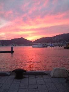 さあ!今日も、前向きにいってみましょう! 秋になりましたね。風も空気も、ドコか違って感じる前向き野郎。。夕方、お散歩をかねて出島界隈をフラついてまいりました。海と夕陽をボケ~っと眺めてたら、つい、泣きそうになったンで、手持ちのワンカップ酒を煽り、ケータイのカメラでパチっ!↑こんな感じ。。つまり、、妙に黄昏ちゃってたワケよ‥。前向き野郎だって、たまにはこんな時もあったりするのだ‥。今は~ もう秋~ダレも~ いない海ぃ~~とか、クチづさんだりしたワケよ。犬を散歩させてたセレブなオバヤンに笑われちゃったけどさ。フン‥だ。フツーに生きてりゃ、前向きに、イロイロあらぁね。ってなワケで、今日はココまで。。ま、サクっ!といきましょっ さあ!今日も、前向きにまいりましょう! 《終》
