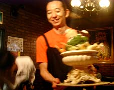さあ!今日も、前向きにいってみましょう! 今日は夕方から、前向きなお友だち、つっくんオススメの、「ウナギの白焼きをオイシく食べよう会」っつうのを、仕事場一階にある喫茶店のご好意で実行した。前々から話しには聞いておった独特な食べ方らしいので、ソレならば、オイシく食べるついでに、おご馳走になるこっち側としても、ナニがしか用意せねばなるまいぞ。というコトで、チト高めの白ワインを調達してくるのであった。 ↑シャブリ。。前向き野郎は、白ワインっつうのはあんまし飲まないけども、ウナギの白焼きには、赤よか白でしょう。。と、酒屋のオヤジにダマされて(笑)こんな高い白ワインをつい、買っちまった。で、早速おっ始めるコトに‥。 ↑お皿に盛られた、けっこう高いウナギの白焼き。と、そのバックにある大葉とワサビ漬けにご注目。。この脇役たちが、独特な食べ方のサポートをしてのけてくれるらすぃ。とりあえず、せっかくの高級白焼きであるからして、レンジでチン!よか、チャンと、蒸すコトになった。下の喫茶店のオーナーさんが自ら持参してくれた、キャンプ用の万能鍋。と、切って並べた、スゲェ高い、白焼き。。 ↑コレね。で、 ↑蒸し上がり。。で、コレをどうやって食べるか‥というと、 ↑このようにするのであった。大葉に、蒸し上がった白焼きを乗っけて、ワサビ漬けを塗り、ポン酢につけて食す。。↑(モデル:つっくん)前向き野郎も見よう見まねでやってみた。熱チっ!熱チチチぃ~!蒸し立てであるからして、大葉に乗っける時、気をつけないとヤケドするのだ。↑(遅かったが‥)で、ヒトクチ、頬張ってみた。ウっ!ウぅ‥