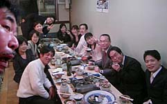 さあ!今日も、前向きにいってみましょう! やっと山を越えた。非常にタイトなスケジュールであったが、某専門学校のパンフレットデザインを無事、印刷会社にお渡しできた。ここ数週間で、二校分のパンフレットを制作したワケだけれども、。その間、他の仕事もこなしてたモンだから、ホントにタイヘンであった。。オチュカレ! 前向き野郎!しかし、、この数週間のコトを、ジツは、あんまし憶えておらにゅ。。朝だか昼だか夜だかワケ分からぬままに翌日‥の連続であったがゆえに、この間の、いついつの何時頃、ドコドコで‥とか言われても、おそらく分かるまい。。ま、そんな感じだけども、ようやく解放されたトコロで、パンフレットデザインアップの某専門学校の打上げに呼ばれたが、先に制作した某専門学校の情報系学科の親睦会に呼ばれておったので、ソッチに行った。ンで、メチャメチャ酔っぱらった。そん時の模様↓↑左端に心霊写真っぽく写ってるボク‥コレ、ケータイのデジカメで撮ったンだけども、片手で撮影したので見切れちまった。ま、全部写ったからって、ただの酔っぱらい顔なので、こんぐらいで丁度イイか。。しかし、デカい顔‥よね。ってなワケで今日はココまで。。ま、サクっ!といきましょっ さあ!今日も、前向きにまいりましょう! 《終》