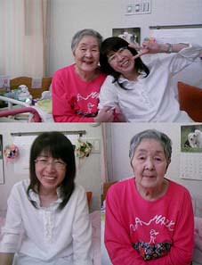 さあ!今日も、前向きにいってみましょう! ゆんべ、あんな日記書いたからか知らないけど、ケータイの機能が回復しておった。ので、ソフバのまんまで続行するコトにした。今後も頼ンますばい!で、こないだアップする予定だった画像をとりあえずアップしとこっと。。↑日曜日、オッカサンの病室にて。。ふだんメッタに見られない姉の子どもっぽい笑顔がカワユイ。。オッカサンも、メチャメチャ回復してきてます♪ンで、月イチレギュラーの珍来ラジオ出演のタメ、ペコロスさんと立ち飲み屋さんでスタンバってるトコロに、飛び入り多数参加。。↑手前の二人:ペコロスさんとジャーマネのマダムペコその後ろ:カメラに恥じらうコアラ星人&マッキーそのまた後ろ:立ち飲み屋の常連‥という具合に、一日の疲れに拍車をかけるようなご意見無用のラジオ生放送も無事に終え、コッチが本番、恒例の反省会に突入。。ンで、途中、何度も記憶を失いつつ語り合うが、最終バスの時間となり、お先に失礼。。帰りのバスで、お世話になってる某専門学校のペ・ヨンジュンにクリソツの先生と同席となるが、ナニを喋ったか憶えちゃいない。クタクタのヨレヨレんなって帰宅して、お米磨いで、ご飯炊いて、寝た。ってなワケで今日はココまで。。ま、サクっ!といきましょっ さあ!今日も、前向きにまいりましょう! 《終》