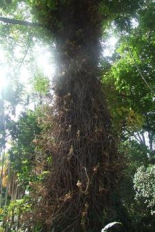 ハワイのフォスター植物園で気になる木。木に成る実。 わたくし、ここの植物園の中にひとりぼっちで閉じ込められてしまいまちたちゃんと閉園時間の前に外に出たのに、一番外の門の鍵がかかってて、外に出られない他に出口があるのかと園内をぐるぐると回って探したけれど見つけられず。中はジャングルだから、暗いし、一人ぼっちだし、蚊がいるし。。しかたなく、フェンス登って脱出しようと思って、ウエッジソールのサンダルを脱いでいざフェンスに足を掛けてみたら、「効くー、効きすぎー」な感じに足の裏がめちゃ痛くて、尻込みそれにスカート短かったし、フェンスの上の部分は有刺鉄線とまではいかないけど、切りっ放しでトゲトゲしてるし。。。ムリ。ここ↓を登って、無事脱出したけれど、悪いことしてるわけじゃないのに人に見られないか気にしながら塀を乗り越えるというのは切ないものです。てか、素手でこうゆうの↓↓触りたくないっつーのハワイで唯一、人の悪意を感じた出来事でした(笑 この件は確信犯。こんどハワイ行ったらしっかりお礼しに・・・なぁんてもう行かニャい。ここには。