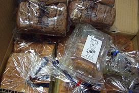 友人Cちゃんからダンボールが届いて、何かと思ったら。パンスーパーで売ってる食パンの3倍くらいのお値段の高級パン!デニッシュ・ぶどう・かぼちゃ・グラハムなどの食パンとクリームパンとラスクと・・・冷凍して、自然解凍して、フライパンを使って超弱火で温めていただいてます。買ってきたパンを食べる時はトースターじゃなくてフライパンで焼くのが好きです。そのほうが中がふわっとやわらかくなる気がする。前にCちゃんが焼いてくれたクリームパン、今まで食べた中で一番おいしかったよ。今度作り方教えてね。 おいしいパンを食べて毎日しあわせだよ~。ありがと