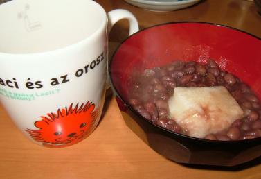今日は鏡開きだったので小豆を豆から煮て、おしるこを作りましたおしるこ(となりはお気に入りの、ラチとらいおんのマグカップ ラチとらいおんは大好きな絵本の1つなの)作り方1・小豆を洗ってゆでこぼす2・水を小豆の4倍くらい入れて煮る3・やわらかくなったら白砂糖と黒砂糖を1:2くらいの割合で 適当に入れる4・少し煮たら、塩で味をととのえる5・お餅を焼いて入れるすごく簡単に美味しくできました私は小豆やアンコは大好きなんだけど、お店で食べるお汁粉はちょっと甘くてたくさんは食べれないのです。なので、かなりあっさりした甘さに仕上げました。お砂糖のかわりに蜂蜜を入れても体にいいかも♪晩御飯のあとにこんなに食べちゃってダイエット宣言したばっかなのに。。でも、縁起物だしいいよね?あ~~、美味しかった♪