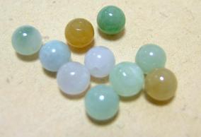 ジョイテックさん・続き1回目はこちら続いてはビーズを使ってブレスレットを作ってみました。使ったものは翡翠 7mm丸玉ビーズMIX10個パック 【11】×3翡翠 12mmモスグリーン系丸玉ビーズ【14】×1ブレスレット製作用シリコンゴム1m7ミリのは3袋とはいっても実際に使ったのは21個(つまり2袋と1個)。残りは3ワンと家の人のお守りに加工する予定ですww届いた7ミリビーズはこれ。バラエティに富んだ色が入ってて嬉しいww透明感のあるもの、ミルキーな色。淡翠、白、ラベンダー、黄、茶。単色のもの、1粒の中に色が混じっている物・・・翡翠のいろいろな色が楽しめて、眺めているだけでもにんまりしちゃったww中でも気に入ったお色のビーズはこれです♪白っぽい中に鮮やかな翠が入っていたり透明感が抜群だったり明るい黄色と白がはちみつミルクのように混ざっていたりはぁ~~~wwうっとり~~~で、配色をいろいろと考えて、作ったブレスがこれです12ミリのモスグリーンのビーズをアクセントにして、同系色のビーズが3~4個並ぶようにしてポイントに黄色のビーズをいれてみましたww12ミリと7ミリの大きさって、思ってた以上にあるのね~~~自画自賛。かなり気に入りました~ww毎日着けるお守りブレスレットにしますまだまだ続く。。。