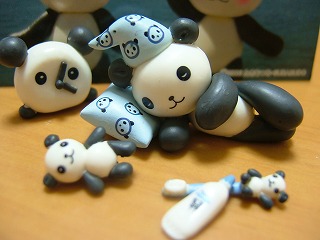 先日、めっさ可愛い食玩をみつけちゃいましたで、収集癖同盟第一期会員としては収集癖をいかんなく発揮せずにはいられません。これは中身が選べるのでダブりなく安心して買えるの♪なので6個まとめてお買い上げ~~~wwこの食玩は、フィギュアとフォトカードに香港旅行記マンガがついてます。まずは1つ目。おやすみパンダ枕もナイトキャップもパンダ柄ww歯磨きセットもパンダになってるのww2つ目~♪おやつパンダアイス3段がさねは子供の頃の夢でした。でも、一度だけやったことがあるんだけどどんどん溶けて一番下のほうにたどり着く頃には・・・な状態に;;;美味しく食べるにはシャーベットを一番上に乗っけてもらうことだと学習しました。。。(↑すでに食玩の話ではない。。)3つ目~!おべんきょうパンダえんぴつもパンダ~!!このパンダが書いているのは日記なの。見えにくいけどちゃんと表紙にもパンダの絵と「DIARY」って書いてあります♪4つ目!!飲茶パンダうさぎまんが可愛い~~~wwこの蒸し器、裏までちゃんとつくってありました♪まだまだ!5つ目ーーー!!!フルーツパンダカゴの中にはマンゴーとかドリアンと思われる色とりどりの果物が入っててミニパンダは栗を抱えてますラスト!6つ目!!おもちゃパンダ!!!ウシ君とカエル君、ではなくパンダ君とカエル君です。うさぎもちゃんと手が入るように裏側に空間がつくってあるのwwうふふふふww可愛い~~~~!!自分のためにこの写真をフリーページにのっけていつでも見られるようにしておこうっと本日3回目の更新2回目は ブレス1回目は ブレスとリングカウプレ、やってまーす!9月10日締め切りです♪よろしかったらぜひぜひご参加くださーーい!