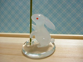 実はクアハウスの帰り道でこんなにかわいいうさぎさんを捕獲してしまいました お香を持たせると「これでお餅をつくの?杵の代わりに?」ってお香を見上げてるみたいでもっそい可愛いですww実はこのお香立て、いつも仲良くしてくださっている日本香堂のお店・香ぎゃらりぃのおかのさんのブログで御紹介されていてずっとずっと欲しいって思っていたものなのwwおかのさんのブログはいつも素敵な香りや香りにまつわるお話が満載でいつも誘惑されてしまっていますいつも使っている駅の駅ビルの中に日本香道のお香やお香たてを扱ってるお店があるのであのうさぎのお香立てもあるかなーと思って覗いてみたら、なんと最後の一個!!!ラス1に弱い私は即お買い上げ(笑)家に帰って早速お香を持たせて撮った写真がこれなのです。もうもう、めっさ可愛くて可愛くて仕方がありません~~なのでしつこいですがもう一枚(笑)あ~~~、今回のお買い物も大満足~~~そして昨日はジャングル姐さんからのカウプレが届きました♪翡翠とセラフィナイトのストラップーーー!!!セラフィナイトは初めて手にしましたが翡翠とはまた違う深くて暖かみのある緑色に天使の羽のようなあるいは濃いお抹茶にコーヒーミルクを入れたようなそんなふんわりとして不思議に光る白い模様が入っていて本当に素敵な石ですww前から1つは持ってみたかった石なので本当に嬉しい~~~~wwジャングル姐さん、ありがとうございました!!!