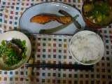 鮭の塩焼き 葱&じゃこたっぷりかけた冷奴 たまねぎとわかめのお味噌汁そしてご飯。う~~~む、、、朝ごはんやにゃ。。でも、一番好きなメニューです(^-^)