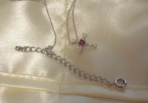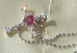 きのうの日記に載せたダイヤとルビーのクロス、今日はお天気が良かったので太陽の下で撮ってみました♪
