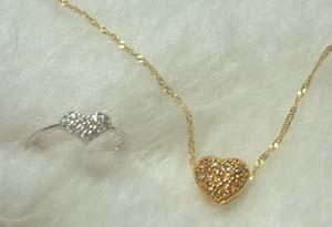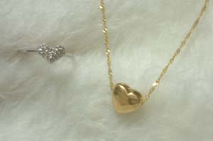 シンプルに、金のプレートがハート型になっていて、ハートの両側から鎖が出ている、、そんな感じのネックレスが欲しいなあ、と思い、あれこれ見ていました。