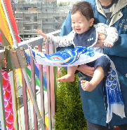 昨日はMRの予防接種を受けてきたので安静にしていたけれど今日は元気に遊びました♪お天気もお日柄もよく パパがベランダに鯉のぼりを飾ってくれました~ママが三越の均1万円セールに行列して買ってきた鯉のぼりセットなの♪大空にたなびく鯉のぼりのように 元気に おおらかに すくすく育て~ と願いをこめました手作りの節句飾り(桃太郎に因んだ縁起物)も飾ったよ♪ 桃 は 豊かさ を現し 風車 は 福がまわる と縁起をかつぎ 真鯉 桃太郎 はそれぞれ 勇気 と勇者の元気な子を象徴します。 それから 猿 御殿まり ふくべ(福寿千成)。 一針一針 心を込めて縫いました。 まりは接着剤で紐に付いてるの! お願いだから引っ張らないで~!!!