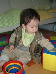 渋谷の児童館に行って来ました。 江角まき子 さんがお嬢さんを連れて来ていたました。 ママと2人きりだったけれど 何も出来なかった 「ぐーたんぬーぼ いつも見てます!」とか言えばよかったかしら?今日は ハッピーホップタイムに参加。 英語で歌を歌いながら踊ったりして楽しかった。 1歳から参加できるから最年少 (多分)糸巻き巻き の歌を今日は英語で歌ったよ♪その後幼稚園児に混じって遊びましたお昼はお友達とランチみんな食べてる時だけは静かだね~移動中は寝ていたのでママたちはハーゲンダッツでアイスを食べて 外苑前の あい・ぽーとにGO!お友達は三輪車に上手に乗っていたけれど 王子は必死に歩く練習中・・・やっぱりこけちゃったね。 今日は お靴を履いて一人で8歩歩いたね! キューピーのベビーカーを押して歩け歩け♪ 仲良しのお友達とお砂場デビューも果たしました☆