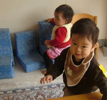 表参道の あい・ぽーと http://www.ai-port.jp/index'.htmlに行ってきました♪ 結構ひろびろしていて窓も大きく 子供たちはお部屋だけじゃなく廊下を動きまわるのも楽しそう♪ 食事をするスペースには子供用の椅子もある なかなか机の前に座ってくれない・・・ お~い 2人とも! お友達とボールプールで遊んで おもちゃもいろいろ 木製の手押し機関車 しゅぽしゅぽ 音が出るので夢中になって押していました 少しは絵本も読もうね♪ 色のついたおもちゃ大好き! たっぷり遊んで今日も熟睡してくれました♪