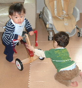 午前中ママはエアロビ♪ 運動不足を実感 やっぱりヨガの方がいいわ。。。お昼から仲良しのお友達のおうちにお出かけしました。ママたちは美味しい手料理に舌鼓をうち(ビーフシチュー モッツァレラチーズとバジルのサラダ♪などなど)子供達は・・・え~これいいね! 貸して貸して~ でも自分では乗れない王子でしたお友達は一人で乗れるなんてすごいね~!みんなでディズニーでお勉強?もしたね・・・散らかしてますね~・・ごめんなさい・・・いいな~お友達のおもちゃママたちはシェ松尾の三宿ロール&クレームブリュレ&コーヒーでおしゃべりタイムも充実。ジノリの食器たち割られなくて良かった~ ほっ。うちにもまた来てね~!
