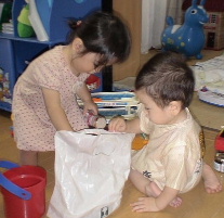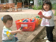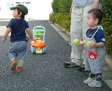 幼児教室の日♪りんごのかずとおなじすうじのシールを○にはりましょう。できた できた! 絵本は☆青い風船 作・絵: ミック・インクペン 訳: 角野 栄子あおいふうせんと遊ぶ、少年と犬のお話。ページをめくると、ふうせんがぐーんと大きくなったり、伸びたりするしかけになっていて王子も興味津々だった!☆BARNEY BEAR WORLD TRAVELERバーニーベアーが世界旅行をします。タクシーに乗って空港へ、飛行機にのって太平洋をひとっ飛び♪乗り物好きの王子が食いつかないはずがありません。この本そのうち買ってあげようね!おえかきでは おうち を描きました♪紙の歯ブラシを持って絵本のくまさんの歯を磨いてあげたり、手を動かす作業がいろいろあって一生懸命取り組んでいました。★〓★〓★ レッスンの後個人面談★〓★〓★〒 言葉、社会適応性、身体など5つの分野で年月齢以上の成長が見られます。テレビの時間が1日1.5時間というのは若干多いですが、どんなテレビを見ていますか?卍 平日朝7時から9時過ぎまで(日本語であそぼ、英語であそぼ、からだであそぼ、ぐーちょこらんたん、でこぼこフレンズ、おかあさんといっしょ、ピタゴラスイッチ、ぜんまいざむらい 他)日曜日はセサミストリートなどです。 (あれ?2時間超えてるな・・・)〒 夜はどんな番組を見ますか?卍 ニュースと(その後クローズアップ現代)・・・・バラエティです。。。(ドラマもちょっと)(でも王子が寝てからの方が多いな、ぷっスマ 水曜どうでしょうゴールデン=今週アメリカ横断が最終回だった。。 エンタの神様 チャングム プリズンブレイク とか・・)〒 番組は子供の目に最初に触れるものとしてふさわしいものを。子供には美しいものや素晴らしいものをなるべく見せてあげましょうね♪テレビも一人で見せるのではなく親が一緒に遊びながら見たり、番組で見たものを日常の中で振り返ってみるという見方をするのならば意味があるでしょう。そうでないと基本的にテレビを見るという事だけでは人間の脳は働きません。むしろ、子供が見つけた遊びをさせる、体を使って何かをするということに時間を使うようにしましょうね♪テレビも番組を決めて見るようにしましょう~時間は有意義に使いましょう~卍 は~い!〒 教育方針はパパと話し合っていますか?卍 はい、健全な精神は健全な身体に宿る という事で元気に遊ばせることにしております♪〒 それはとても良いことですね 云々・・・あれこれお話している内に担当の先生はずっと昔我が家と同じ所に住んでいた大先輩と知ったのでした。世間って狭いのね。 最後にとどめのひと言〒うちはテレビ全然見せなかったのよ だからとても本が好きになったわふ~ん それって因果関係あるのかな?私はテレビも大好き!で本も大好き!なんだけどね~さて、我が家の教育方針に則って?帰りには公園へ♪お友達のボールを拝借して遊んだりしゅぽしゅぽ押したりお砂場で穴掘りもしてみたよ!ボクの掘った穴に落ちないでね!今日の絵本☆のりものなにかな☆ひらなが☆かず☆あいうえお えほん☆カタカナ えほん☆My First ABC