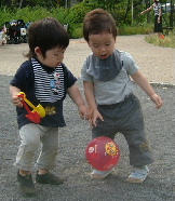 本日は朝5時前に起床した王子 こういう日は一日眠い(~O~)ふぁ・・一眠りして幼児教室へ一緒のクラスには6月生まれの男の子、7月生まれと10月の女の子がいてレッスンの理解度がかなり違うジグゾーパズルや入れ子のコップを重ねたり ママの助けを借りながらも他の子はちゃんと出来ている様子。王子は椅子に座ることもなくほとんど立ったまま・・・ 早生まれkidsママ達から幼稚園に入ってから大変よ~ という話を聞くにつけちょっとでも訓練になればいいな と思う ま、楽しく出来ている様子なので しばらく通ってみることにします。""""""""""""""""""""""""""""""""" その後はお楽しみの公園遊び♪ボールの取り合いは引き分け~?お友達はまだまだママに甘えたいお年頃♪おやつタイム♪ママは手ぶらで行ったにもかかわらず、ヨックモック、チョコチップクッキー、おまんじゅう、かりんとう、ポテチ 等々盛りだくさんのおやつを頂いた。謝謝!(かりんとうはナチュラルハウスの玄米入り塩味(だっけ?)美味しかったので今度買いに行こう。。。)瞬間芸なの!今日は寝る瞬間を見逃してしまった!残念(> o