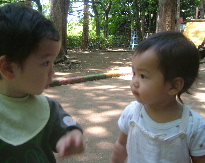 暑すぎずお出かけ日和のお天気 お昼過ぎから近所の公園で遊びました♪一番乗りのお友達とお砂場遊び♪ ずいぶん集中して遊んでるね! 姫のママから頂いたお豆腐入りホットケーキ とても美味しかった! いつも ごちそうさま!!!犬の「はな」と登場したお友達は来る途中で寝てしまったんだって。 う~ん、いつも王子と楽しいバトルを繰り広げてくれるお友達なのに残念だな~ 水曜日また遊べるかな!?お昼寝から目覚めて公園でお昼の続き~ そのパワフルさの源はやっぱり「食」にあったのね!お友達が来たころには王子はウトウト~お昼寝タイムに突入してしまいました。ここでママのカメラが壊れてしまいました。 風で飛んできた砂が入ったのか?カメラが閉まらなくなってしまった。。。 という訳でここからは投稿写真?です。食後活発に動きだしたお友達 アスレチックももうすぐ出来そうな勢いね!おやつと共に登場~ (後ろで寝ているのは別のお友達と王子だよ)ママから頂いたお菓子(サーターアンタギー・・じゃなくて何だっけ?)美味しかったです。ごちそうさま~!これから活動開始~! 王子は一旦起きて皆とすべり台で遊んでから帰りました。 今日はお先に失礼しま~す!今日の絵本☆どうぶつ☆かぶとむし☆jungle Animalsライオンがジャングルで会う色々な動物に会い、 その動物が何色かたずねます。他にトラ、オウム、ゾウ、フラミンゴが出てきます。 スライドを引っ張ると白いライオンが黄色に変身!する仕掛けで王子が飛びついて来ました!この本がボロボロにされる日も近いなぁ。。。今日の読売編集手帳に 旧大蔵省で事務次官を務めた尾崎護さんの「祖父の塾」が紹介されていた。漢文の素読や詩歌の音読をしているという。 世田谷区は全国で初めて日本語教育特区に認定され小学校1年生から杜甫の漢詩や山上憶良の短歌などを教えているという。 このような言葉をあらゆる知的活動の基盤と位置づけた取り組みは素晴らしいと思う。まずは「母国語」よね!