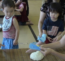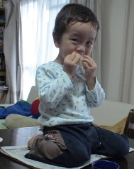 今日は児童館でみんなでパンを作りました♪みんなで コネコネ・・こねこね・・・脱走中の王子とお友達 久々のツーショット!と思ったらあっちを向いちゃった。。よかった、こっち向いてくれました!お友達のママがパンの形を作ってくれました。 またまた車を持って邪魔する王子お友達はまったり~ 寝起きかな?お友達はしばらくママのご実家に帰ってしまいます。 ご近所だし よく遊んでもらっていたので寂しいなァ・・・ でも可愛い弟を連れて 元気に戻ってきてね! ママもがんばれ~!!!そんなセンチメンタルな気分とは関係なく お外でパン焼き!豪快!どこに行っても脱走中~ そしていよいよパンを食べる時が来た! と~っても美味しかったんだけど、1家族1個しかなくて、絶望的に空腹!(今日は「パン」のせいか人も多かったし・・・)ママはスーパーに寄って とりあえずすぐ食べられるものを買い 王子と争って2度目の昼食、やっとお腹いっぱいになりました。あ~あ、午後もみんなと遊びたかったのに。今日の絵本☆はらぺこあおむし エリックカール☆くだもの きうちかつ☆トミカコレクションそうそう、昨日はヨガ&幼児教室に行きました♪仲良しのお友達が土曜日のクラスに編入することになって少し寂しい。。。サボっていたので写真はありません