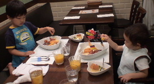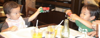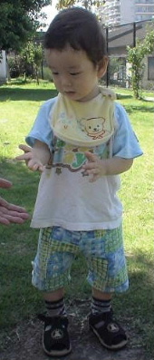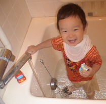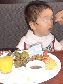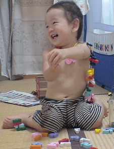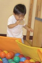 すっかり水遊び好きになった王子 朝からお風呂で水遊び開始~省エネのためにも程ほどで切り上げて下さい!お友達との約束に遅刻しちゃうよ!急いで急いで!洋服も着替えなくちゃ~今日も真夏日!お友達とスキップキッズに行ってきました。ここは 子供たちが遊べるペースと、その周りで食事ができるスペースがある親子カフェです。1~6歳の子供が対象で 1時間 250円 以降30分毎に100円 の費用がかかります。ただし ランチを親子で注文すると 食事タイム1時間は無料♪まずはランチ♪スキップ・キッズプレート \500 (ハンバーグ、エビフライ、ミートスパゲティ、フライドポテト、グリーンサラダ、 オレンジorアップルジュース)王子は完食!と思ったらスパゲティはほとんど床に落ちていました・・・王子はまだまだ手づかみ食べが主流のため 食事の後は どこの動物園?という感じの散らかりようです。しかも ママのゴルゴンゾーラリゾットも食べているし!リゾット・パスタは量が圧倒的に少なく これで1150円?という感じ×2 ×3は行けそう遊びたくてたまらないキッズ達は出動早速ボールプールの海で泳ぎ始めました~ボールがかなり沢山あり 歩くのも大変!奥の方にもずんずん進んで行きます~皆ほとんど必死! かなり筋力を使っていること間違いなし!お友達が何と自力でボールプールの中の階段を上り初め・・・王子たちも 階段登り階段を登って右に曲がるとサンドバッグがぶら下がっています。サンドバッグを通り過ぎるといよいよ滑り台!滑り台も制覇!王子も途中怖がりながらも上から滑ってくるお兄ちゃん達に押されてGOAL!お友達は何度も滑っていたみたいだったね♪(ママは写真を撮る暇もなく滑り台でひたすら逡巡する王子にかかりきりでした。。。)お絵かき おままごと も出来て充実♪ボールプール&階段&滑り台スペースではスタッフの人が子供達を見てくれているので ママが付いていなくても大丈夫になったら ママ達は喫茶コーナーでおしゃべり出来そう♪夢のようだ~雑誌や絵本コーナーもありました。大満足のスキップキッズを後にして近所の商店街を散策♪王子のお洋服やおもちゃを買いました。お友達もいろいろお買い物をしていて自分も更に買った気分♪ 上島珈琲店でジャズを聴きながらママ達のティータイム♪全員撃沈したので優雅なおしゃべりタイムになりました。珈琲グラニータ&豆乳デザートいちごプリンも美味しく 幸せな一時♪是非また行きたいな!遊んでくれたお友達どうもありがとう本日は長崎被爆の日 帰宅後合掌今日買ってきたおもちゃ(数字の形 の 紐通し)で遊びました♪まだ自分では紐に通せないものの ママが通してあげると大喜び! china freeを心がけているのに 買ってしまった~中国製品 なめたりしないように側に付いていなくちゃ!今日の絵本☆くだもの なんだこの頃毎日 持ってきて3回 4回 と読む絵本☆がたんごとん 作・絵: 安西水丸☆じゃあじゃあびりびり まつい のりこ作久しぶりに読みました。自動車 ぶーぶーぶーぶーのページが特に好き!100冊マラソンの本☆a bugs lifeいよいよ100冊マラソン最後の絵本一抹の寂しさを感じながら読みました長いお話なのでじっくり聞いてくれることは期待せず 本をのぞき込んだり おもちゃで遊んだりの王子の傍らで地味に絵本読み実は途中で101冊だったことが分かり1冊得した気分の100冊マラソン初めて出会った素晴らしい英語絵本もあり王子の本棚に新たに加えたものも多数英語育児に共通の意識を持つ仲間と意見を交換したり単語調べを享有したり仲間の子供の成長を喜びながら続けられた事が誇り英語本オリジナル絵本で発音クリニックをしてくれたマミ~にも感謝感謝そして今日は これは(=此れは;先日「これ」が言えたのに続いて助詞も付きました) 自分のニックネーム が言えるようになりました。 さらに 盛んに あんね~ と聞こえるのだが何のことだろう? 「あのね~」と言っているのかもしれない? 我が家では 「あのね~」はあまり使わない言葉なので ??? 謎が解けるのが楽しみ