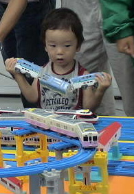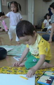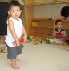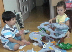 幼児教室に行ってきました♪今日は せみの歌 や おつかいありさん 虫のカーニバル を歌いました♪Qの英単語 お話ドッツかぐや姫 空の雲 「ま」のつくもの のカードも見ました。型おとし ジグゾーパズル もしてお絵かきは車の絵を描きました。幼児教室の一緒のお友達は何でもよく出来るのですがこの頃完璧主義なんだそうです。よく出来る子というのは 出来ない、間違ったらイヤだという事も分かるのが早く、いつも褒められているだけに 褒められないシチュエーション=間違えたり分からなかったりするのが怖い、イヤだと思うようになり 答えを言わなくなったりするそうです。間違ってもいいんだよ、そのままのあなたが大好きだよ というメッセージをママが出してあげることが大切だそうです。一方最年少の王子は 相変わらず レッスンの中で問いに対して答える ことがちゃんと出来ません。概して男の子は遅いそうですが、これもおおらかに構えることが大切とのこと。「手をかけ 言葉をかけ 愛情をかけ」ていれば自然と身に付いていくもの。レッスンの中では 隠れているもの と同じものを推測するゲームがあるのですが いわゆる超能力かと思いきや 持って生まれた右脳の力 直感力を鍛えるもの だそうです。2秒以上考えると左脳の働きになってしまうそうです。その後 ポタジエ 有機野菜のケーキの会本当にヘルシーでいくつでも食べられる 野菜の味がほんのり 甘さ控えめで 子供にも良さそう(あげなかったけど)kidsたちは 歓声をあげて遊んでいました♪ お昼寝がおわったお友達も 手作りのかわいいお洋服で登場!何とか遊んでいた王子は・・・途中でリタイア 眠くなったらしく 周りでお友達が遊んでいても爆睡。王子お気に入りの車たちも人気~今日もボールプールは大人気!お友達がボールプールに激突?する場面も。。(でも柔らかいから大丈夫)いくらお友達が騒いでも全然平気~の王子最後は 韓国ノリをおやつに食べました♪(寝ていた王子は食べられなくて残念だったね海苔はかなりすき)王子は お友達と遊ぶ時 とみに楽しそうな表情をするようになりました。今日も遊んでくれてありがとうお見送りもせず眠ったままで失礼しました。。。今日の絵本☆トミカコレクション