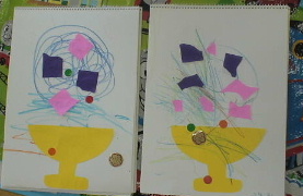 午前中はリトミック♪今日はかき氷の絵を描きました。左は仲良しのお友達の 右が王子のかき氷 冷たくて美味しそうでしょ?お友達のお家でお昼を食べて遊びました。車のおもちゃがたくさんあって お家に入るなり王子はテンション大好きな積み木倒し!うわ~ こっちの部屋には トミカが沢山!お友達は風船を上手に投げていました。お友達はおねむのポーズ。。王子も少し眠そうにしていたものの・・・車のおもちゃで遊びだして2人とも復活~!車をとりあって勝利したお友達 と残念な王子~ 1ヶ月の年の差は大きかったね!積み木の箱を押して家中走り回り 再びおねむモード。結局長居をしちゃいましたが、とっても楽しかったね~!来週もまた遊んでね!!お友達は王子が帰った後 お昼寝王子も 帰り道から何と夜8時までお昼寝しました。今日の絵本☆きんぎょがにげた☆ノンタンはみがき はーみーお友達のママが読んで下さいました。2人とも歯磨き好きになってね!