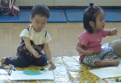 午前中はリトミック♪お絵かきも熱心に!うさぎ と 人参 の色紙をぺたぺた貼って 目はシール そして 塗り塗り~ こんな緑がかったうさぎが出来ました!お絵かきの時は 画用紙の下にビニールシートをひくのですが、王子はお友達の トーマス や 新幹線 のシートが気になって気になって・・・鼻の穴をふくらませながら あちこち放浪。。。結構みんな持ってるのね~たとえ新聞にちっちゃく電車や車が載っていても見つけ出す そんな王子 何処でも何時でも電車と車を探し求めています。くれぐれもお友達のお邪魔にならないようにね!その後は近所の児童館へGO!滑り台にもすいすい上っていきました。大分慣れたみたい。家でもお猿さんの様にどこにでも上っている王子 高いところ大好き! パパの遺伝子だね~ 今日は児童館でクラブがあったらしくとても混んでいたから やっとお気に入りの車に乗れた!お友達と歓談!? 犬の頭取れてるね。。。とったのボクかな?お友達は 腹這いで滑り台を降りるのが得意です♪眠くなっちゃったお友達にバイバイ!お友達のお宅にお邪魔してお昼&遊びました♪ 突然伺ってもいつもきれい!王子のうちの大違いだね!車のおもちゃが沢山ある 車の館に住むお友達! お昼が終わるとすぐに車!すごい勢いで積み木を倒したり投げたりするキッズ達~やっぱり男の子は違うなぁ~今日大人気だったのが 布団タタキ! 振り回して遊んでいるうちに ママの腕にピシッ!痛いよう~ 我が家でも布団タタキが大好きな王子 お友達も気に入っている様子 ママ達気を付けてね!何をしても楽しい!っていう感じの子供達 げらげら笑いながら遊んでパワー全開!あ そうそう パパにメールしておかなくちゃ! えーっと パパ はやく かえって きて あそんで ね美味しい梨も頂きました。ご馳走様です!お友達と精一杯遊んで 寝てしまった王子 みんなに つんつん されながら 爆睡中で~す。お友達も寝たふり~?寝てる間に 王子のお気に入りのヘルメット かぶってみました!唐揚げ大好き!のお友達もかぶってみました!2人とも似合うね!布団ばさみを手にさげて お買い物に行くことに。。今日は もう バイバ~イ! また遊んでね!とってもナチュラルなお友達のママのお陰で 楽しくリラックスして遊んだりおしゃべりしたり♪我が家にも遊びに来てね!今日はママがテレビ(チャングム)を見ていたので絵本は読めませんでした。ごめんね王子!