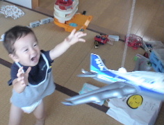 台風上陸間近 蒸し暑い1日でした。お昼間の時間だけあいぽーとにお出かけしました♪怪我したところは腫れも退いてきました。まだ目の回りが青く 痛々しい・・・ 本人はいたって元気なんですがね!お兄ちゃん達と遊んでもらってご満悦の王子♪今日は 空いていて 部屋中走り回ることが出来たみたい♪今日は ばあばと電話でお話して 「ばいばい」が言えるようになりました。(ばーばーと聞こえます)「どうぞ」も言えました。台風なので早く帰ってきたパパに御夕食を「どうぞ どうぞ」と勧める気が効く息子なのです♪今日の絵本☆ずかん・じどうしゃ ☆音がとびだす のりものえほん☆たまごのあかちゃん☆きかんちゃトーマス☆COURAGE