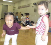 今日は児童館で秋の運動会が開催されました運動会のマーチに乗って最初は玉投げ!赤鬼に向かって みんなで玉投げをしました。 赤鬼に玉がくっつくようになっています。次は、障害物競走お友達も完走~ 王子もママと手をつなぎながら 障害物をジャンプしたりしてとっても楽しそうでした♪お友達のママがつくってくれた旗で応援 フレーフレーおーっ!(と 言えるようになりました。)最後は電車競争電車段ボールを引っ張るママもかなり大変 王子が後ろにひっくり返らないように気を付けながら走りました。最後は表彰式! 全員がひとりひとり表彰台にあがって 金メダルを首にかけてもらいました。ママ達の手作り金メダル 気に入ってくれたかな?お友達は 金メダル なめちゃいそうだね!? どこかの金メダリストみたい!将来はアスリートかもよーい どん!でみんなが同じ方向に走ることが出来たし、(ちょっとびっくり)みんな大満足で 大盛り上がりの運動会でした。午後は久しぶりに公園遊び♪りすの乗り物に乗って遊びました。お友達は自分で登れるよ!2人で一緒にお、こっちにも上ってる! あまりに活発なので お友達のママは心配してついて回っていました。落っこちなくてよかった~ 公園を一回りして探検中~近くで見ると 2人とも必死!大きい滑り台だからママたちも気持ちよく滑りました。 王子も相変わらず うつぶせになって滑り台をおりていきました。ガールフレンドもやっと登場~今日たくさんお昼寝して元気爆発日が短くなったせいか 公園で遊んでいた他のお友達もみんな家路につき、王子たちも返ることにしました。王子は帰りの自転車で 頭をぐらんぐらん揺らしながら眠りこけました。お友達のママからは やっぱり爆睡中~とメールがきました。これから秋の風が心地よい季節 もっとたくさん外遊びしたいな