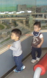今日は久しぶりにかー君と遊びました♪ランチはドンピエールでお子様ランチ! 京橋のお店と違って 随分カジュアル♪やったー 車のおもちゃ おまけにもらったゾ!うかれまくる2人!食事の時も車を片時も離さない。。恐竜大好きのかー君は いつものように 恐竜の真似もしてくれた!似てる似てる~!それから お目当てのピアレッテへ!ここはボーネルンドというデンマークのおもちゃが置いてあるところ。ボールプールは深くておぼれそう~電車のおもちゃも見つけた~2人でサーキットで自転車に挑戦!さすが!かー君上手!王子は・・・またがるのがやっと~抗菌砂場ではおもちゃを取り上げられて泣き出す2人・・・ いろいろあるよね。。王子は外を走る車を発見して無理矢理ぶらさがり状態・・・かー君は エアキャッスル でぴょんぴょんはねて遊んでいました!王子も今度挑戦しようね!ブロックモジュールはかー君と一緒に登ったよ・・・結構な運動量~かー君は なんと サイバーホイール に一人で乗ってくるくる回って楽しそうだった!あんな事が出来るなんてスゴイ!さすが幼稚園生!最後はままごとや動物のおもちゃで遊びました。かなり疲れた様子のかー君と王子 王子は帰りの電車に乗る前に爆睡モードだったけどかー君はどうだったかな?帰りにかるがもの親子を発見!また生まれたんだ~帰宅後 王子は38.1℃の発熱~夜半には37.6℃まで落ち着いたけど週末はのんびり月曜のスキップキッズに備えるつもり!左の臼歯も2本生えて上の歯は8本になりつつある下は未だ4本まだまだよだれがたっぷり出そうだね!1(いち)2(に)は大分前に言えるようになりましたが更に5(ご)7(なな)と8(はち)が言えるようになりました。因みに3は しぃ~ と言います。4は よん と教えているのに ヘンなの!葡萄(ぶどう)のことは ぶゥじょっ と言うようになりました。