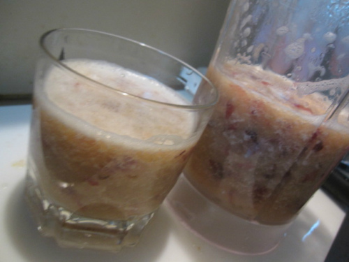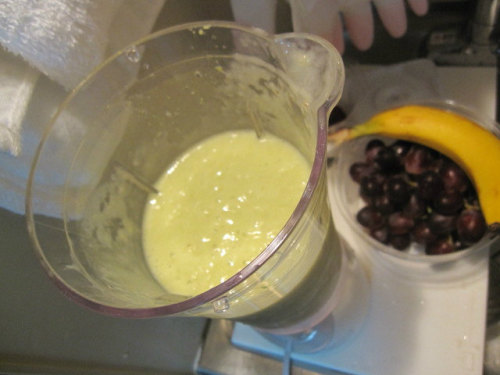 今夜はアボカドとバナナのミックスジュース。量はたいしたことないが濃厚。薄めてますがこれでも多いかも。