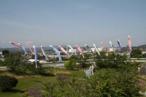静岡県磐田市三家天竜川 浜北大橋の東側 61号線沿いの鯉のぼり。浜松ホトニクス(株)三家工場の向かいカインズモール磐田豊岡店と天竜川の間で撮影しました。