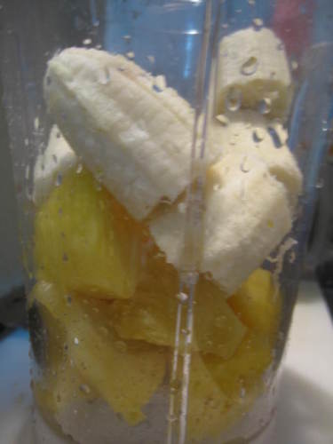今夜のフレッシュジュース。パインとバナナ。最近スーパーからイチゴが消えた。代わりにスイカが出てきている。毎日ジュースを作っているとブドウは皮が邪魔、リンゴは細かく切らないとジュースになるのに時間がかかる。パイナップルは意外に切るのが簡単で日持ちする。グレープフルーツやネーブルもジュースに向いている。しばらくはこのあたりを中心のメニューにしよう。