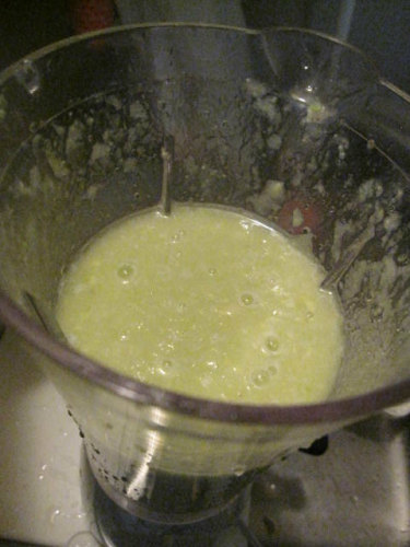 今夜のフレッシュジュース。グレープフルーツとバナナとアボカドのミックス。結局アボカドが入ると緑色になってしまう。しかし味はいい。なかなかいけます。