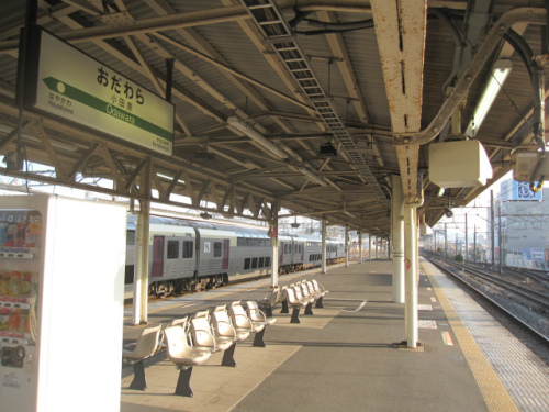小田原の現場に行って来ました。朝、駅から撮った城の写真と仕事が終わってから夜撮った城の写真です。