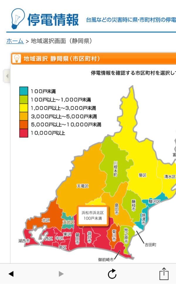 浜北営業所担当地域浜松市 東区の一部(東名高速道路以北)、浜北区、天竜区中部電力|浜北営業所担当地域の停電情報 ─ 停電情報 ─