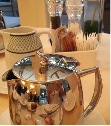 コーヒーを頼むとたっぷりのイタリアンコーヒーが入ったサーバーとこれまたたっぷりのホットミルク!手前のシルバーの容器がコーヒーで、奥の陶器がホットミルク。