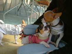 えへへ う~んと長い間 日記を書いてなかった気がします(^_^;)書きたいことは たくさんあったのに なんだか 歯を抜いて以来 ずーと体調が悪く PCに触らなかったり 覗いても書き込みしなかったり しばらく空くと 私は書き込みたくない病にかかってしまうのです・・・(>_<)いけない!いけない! またまた 復活でーす(^_^)vまたまた 田舎に帰ってましたと言っても 長い間ではありません金曜の夜から 日曜の夜までハードな帰省でした今回は 父の3回忌で 家族全員で帰省です速いもので 父が亡くなって まる2年です!時が経つのは 速すぎて 田舎に帰ると 父はまだ元気にお帰り・・て言ってくれるそんな気がします・・・でも帰るといないんですよね(-_-)遺影の中で にこにこ笑っていますきっと いつでも何処でも 私たちのこと見てくれているんでしょうね土曜日は 三回忌の法要で親戚の人たちも集まり 父のおかげで懐かしい人たちに会い いろんな話も出来ました日曜日は この前もお逢いした かのんママとそらんさんと チワワンオフ会ですココアは前にかのんママに頂いたセーターを着ていきました待ち合わせをしたカフェはとてもステキな所ですテラスはわんこOKです とっても広いテラスで リードをつなぐところもたくさんありますお天気もよく 暖かい日だったので お店の人がパラソルを出してくれました(*^_^*)またまた かのんママが待っててくれましたジュノン君とパインちゃん この前逢った時より 少し成長してるような(*^_^*) いつも三匹一緒ですうらやましいな~ ココアも早く妹が欲しいものです(^_^;)相変わらずかのん君達にガウガウのココアですが 少し距離が縮まったと思いませんか?(^_^;)そら君ランちゃんも 登場です!ソラ君はすごく社交的なわんこ! ココアにもかのん君にも積極的にご挨拶 ソラ君はかのん君が気に入ったようで おしりをクンクン!パインちゃんジュノン君は あまりのわんこの多さに ちょっぴり逃げ腰です(*^_^*)みんなにお揃いのお洋服プレゼントです一緒に写真を・・・と思ってココアの洋服も作ったのに すっかり持って行くのを忘れたおばかなココアままです今度 お逢いするときはココアもお揃いお洋服で登場するから また一緒に写真撮ってねとってもハードだったけど 楽しい帰省でしたかのんママ ソランさん バタバタでごめんね そしてありがと~♪