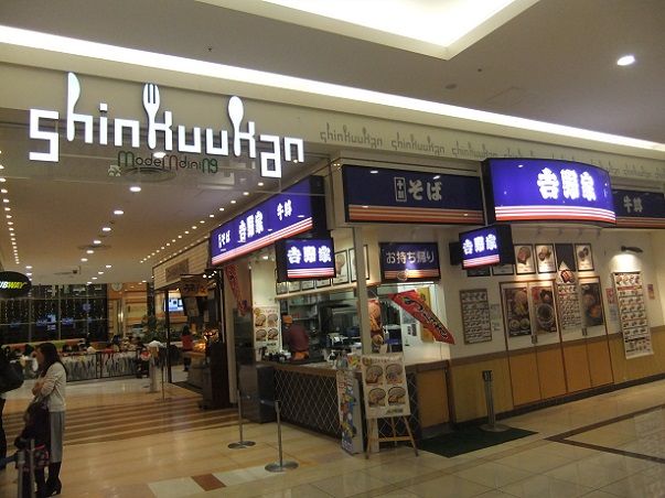 【そば処 吉野家】。” 青い看板 ”の吉野家。足立区では2軒のうち北千住店が2011年初夏に閉店し、もう1軒のこちらはアリオ西新井のフードコートの店。