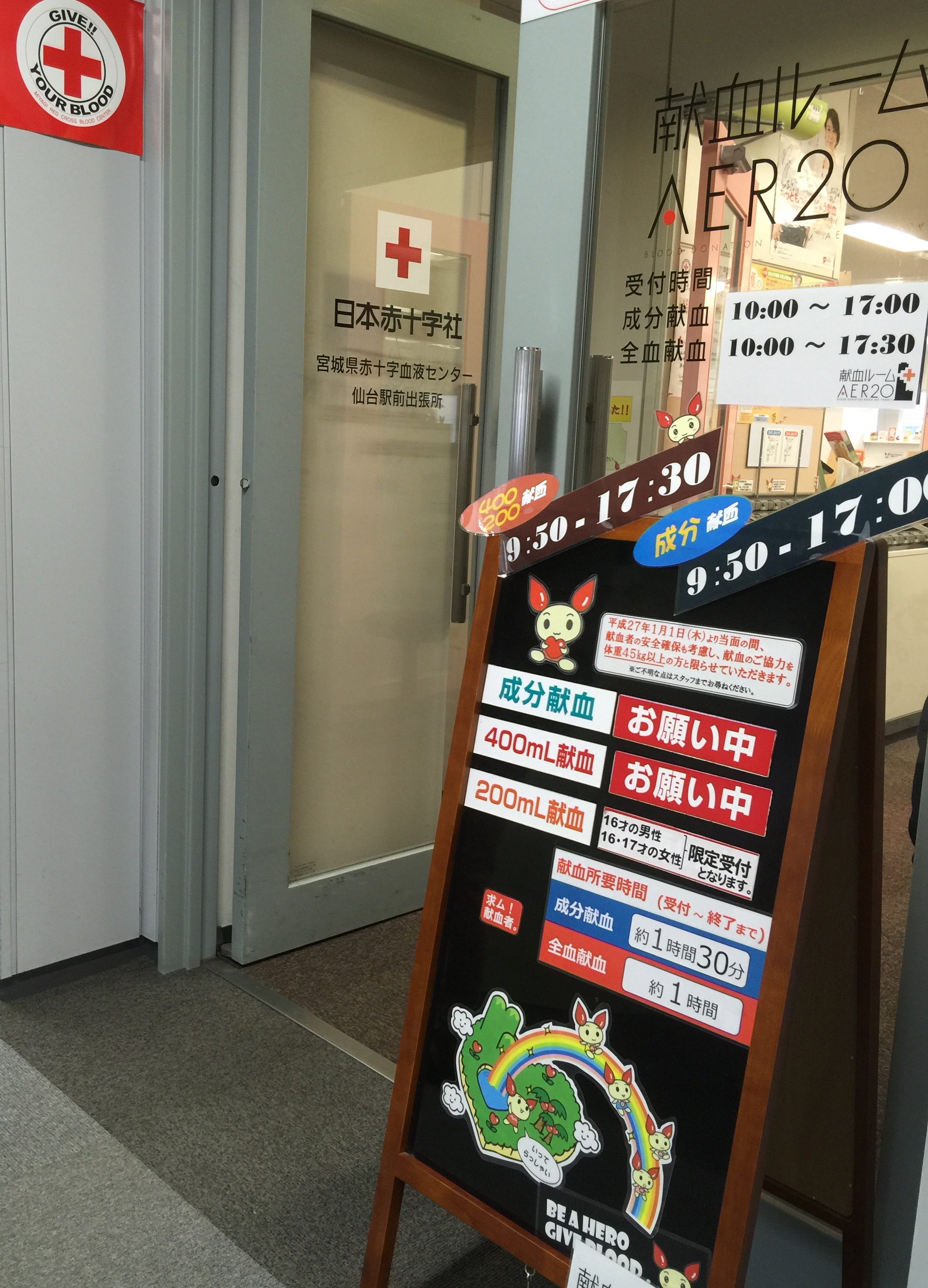 Lizママ生まれて初めての献血に仙台駅前のアエル献血ルームに行きましたよ